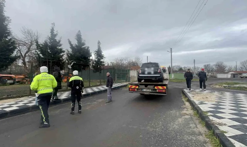 Uygulamanın ardından araç çekiciyle olay yerinden kaldırıldı. Sürücü, durumu savunurken 'arabanın egzozu patlamış' dedi.