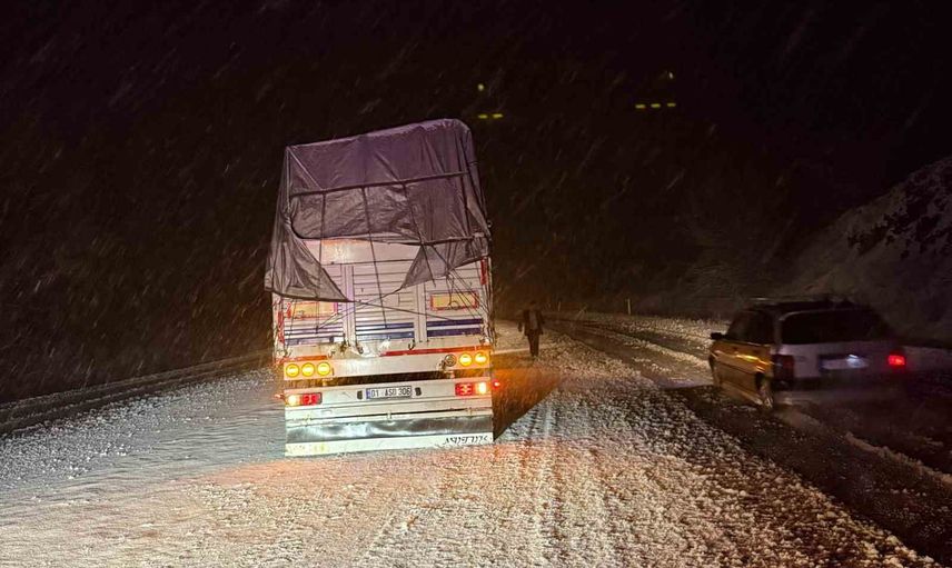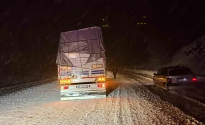 Yağış nedeniyle bazı ağır tonajlı araçlar yollarda mahsur kalırken, bölge birlikleri ve Karayolları ekipleri kar küreme çalışmalarına başladı. Ekipler, ulaşımın güvenli şekilde sürdürülebilmesi için müdahalelerini sürdürüyor.