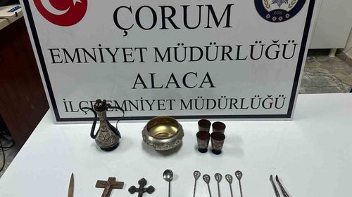 Çorum Alaca'da tarihi eser operasyonu: 2 haç ve çeşitli objeler ele geçirildi