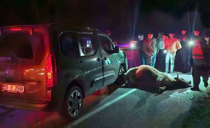 Kazada ağır yaralanan dana ise vatandaşlar tarafından olay yerinde kesildi.