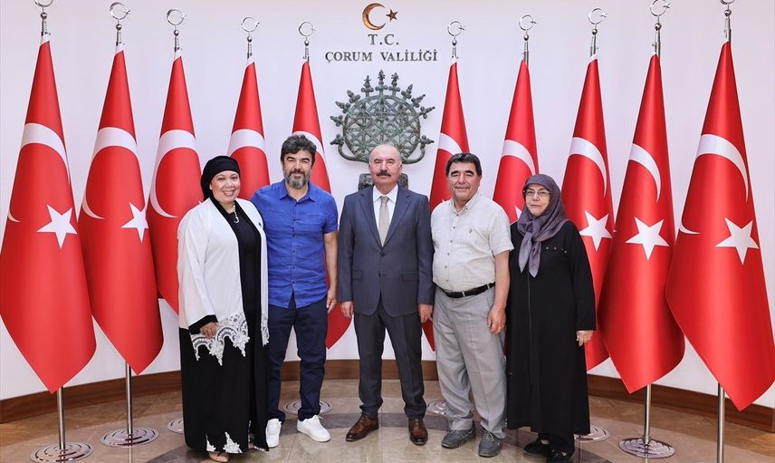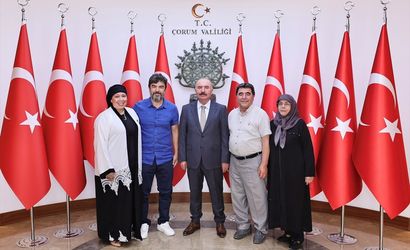 Çorum Valiliğinden yapılan yazılı açıklamaya göre, Fetullahçı Terör Örgütü'nün (FETÖ) 15 Temmuz 2016'daki darbe girişimi sırasında Genelkurmay Başkanlığı önünde yaralanarak gazi olan Telat Kahyaoğlu ve ailesi, Vali Ali Çalgan tarafından makamında kabul edildi.