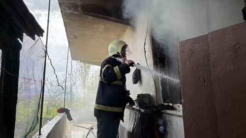 Çorum'un Osmancık ilçesinde İbrahim Şimşek'e ait 2 katlı müstakil evde çıkan yangın, itfaiye ekipleri tarafından söndürüldü.