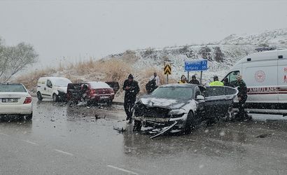 Çorum'da 3 aracın çarpışması sonucu aynı aileden 4 kişi yaralandı.