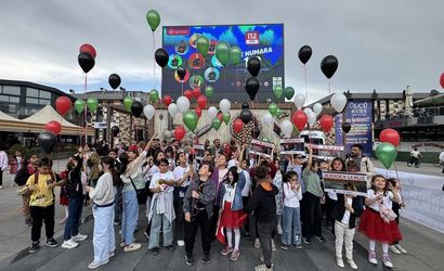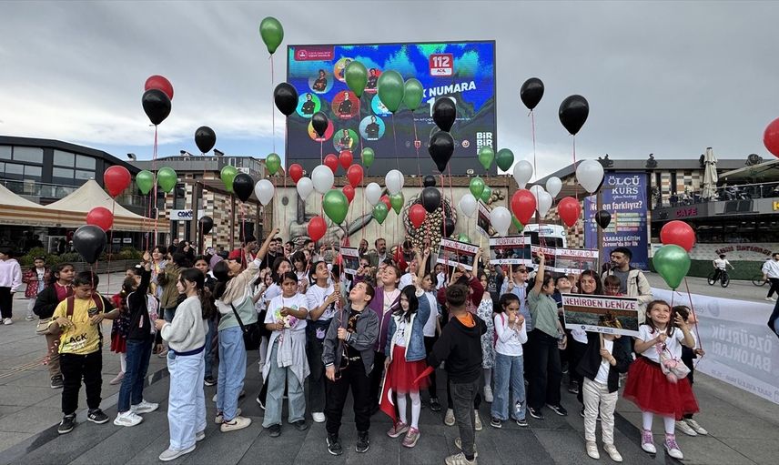 Konuşmaların ardından çocuklar, 10'dan geriye sayarak ellerindeki balonları gökyüzüne bıraktılar.