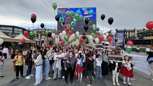 Çorum'da çocuklar, Filistin'deki kardeşlerinin özgürlüğü için balon bıraktı. Etkinlikte barış mesajları verildi.