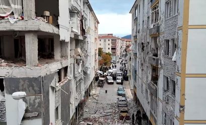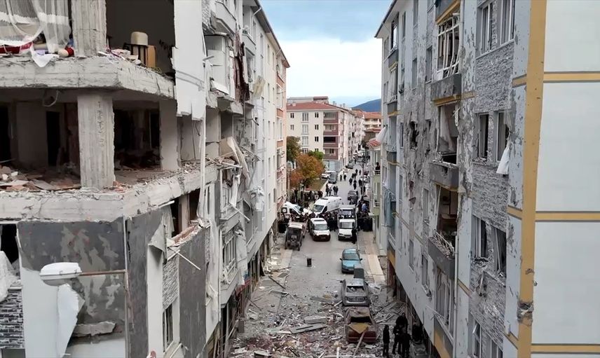 Çorum'da beş katlı binada meydana gelen patlamada 1 kişi hayatını kaybetti, 33 kişi yaralandı. Patlamanın meydana geldiği ev dron ile görüntülendi.