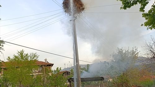 Çorum'da Elektrik Direğindeki Yangında Leylek Yuvası Zarar Gördü