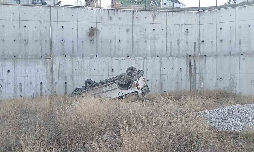 Çorum'un Akkent Mahallesi 8. Cadde'de sürücüsünün direksiyon hakimiyetini kaybetmesi sonucu 19 AY 305 plakalı hafif ticari araç yoldan çıkarak yaklaşık 8 metrelik istinat duvarından spor sahasına düştü.