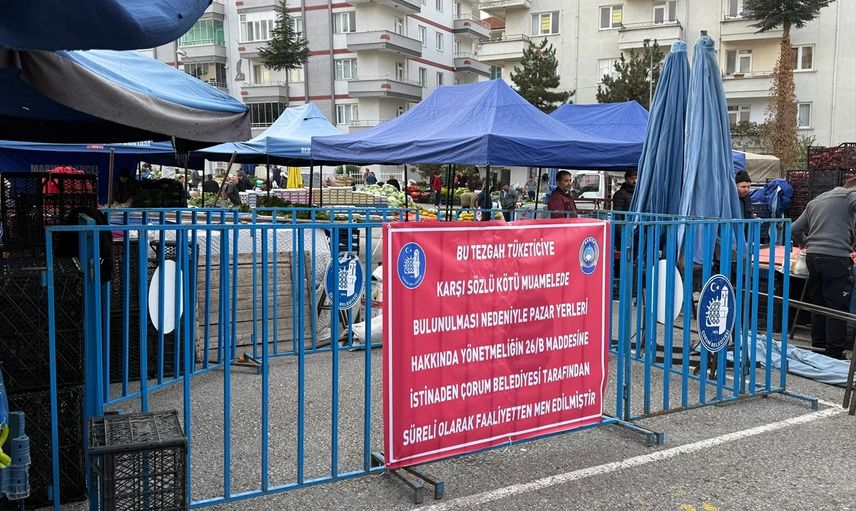 Çorum'da alışveriş sırasında müşteriye "sözlü kötü davranışta bulunduğu" gerekçesiyle 2 pazarcının tezgahının 2 hafta süreyle kapatıldığı bildirildi.