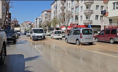 Çorum'un Bahçelievler Mahallesi Mehmet Akif Ersoy 2. Cadde'de, bir inşaat alanında yürütülen temel kazısı sırasında iş makinesi, su borusunu patlattı. Bu olay neticesinde, borudan sızan şebeke suyu cadde ve sokaklara yayıldı.