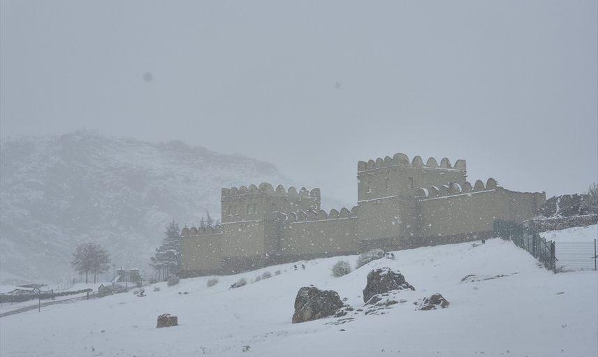 Çorum'un Boğazkale ilçesinde kar yağışı etkili oldu.