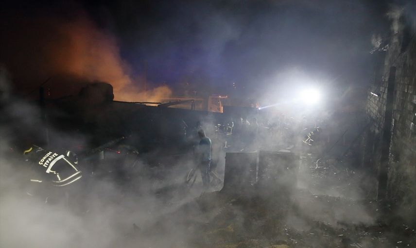 Çorum'da, mandırada çıkan yangında ilk belirlemelere göre 100'den fazla kuzu telef oldu, 2 ev, ahır ve samanlık kullanılamaz hale geldi.