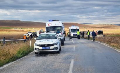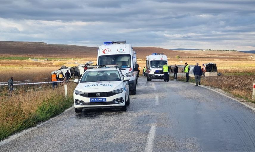 Çorum'un Alaca ilçesinde bir servis minibüsü ile zift yüklü tanker arasında meydana gelen çarpışmada 1 kişi yaşamını yitirdi, 18 kişi yaralandı.