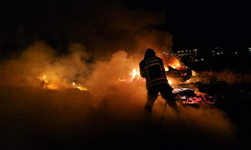 Araçtan sıçrayan alevler, çevrede bulunan atık malzemelere sirayet ederek yangının yayılmasını hızlandırdı.