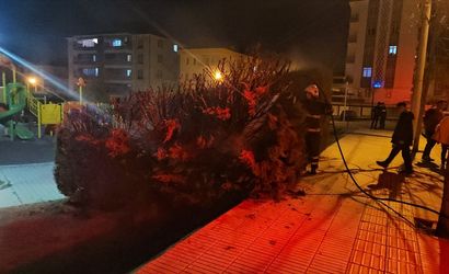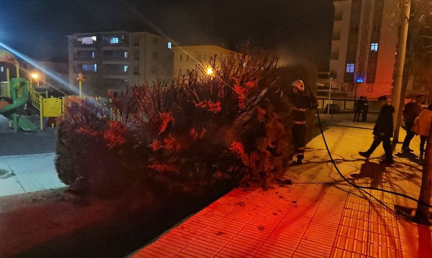 Çorum’da çocuk parkına torpil atılması sonucu çıkan yangında parktaki bazı ağaçlar zarar gördü.