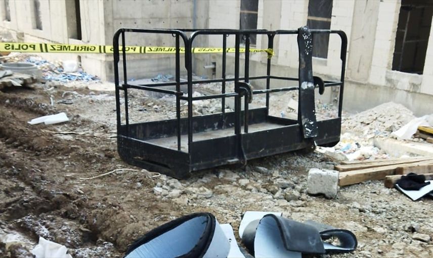 Olay, 60 yaşındaki Davut Uysal ile 34 yaşındaki Bilal Y. adlı işçilerin, vinç sepetinin halatının kopması sonucu üçüncü kat seviyesinden yere düşmesiyle gerçekleşti.