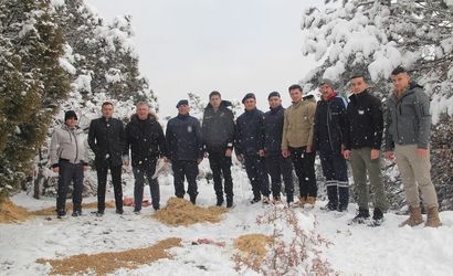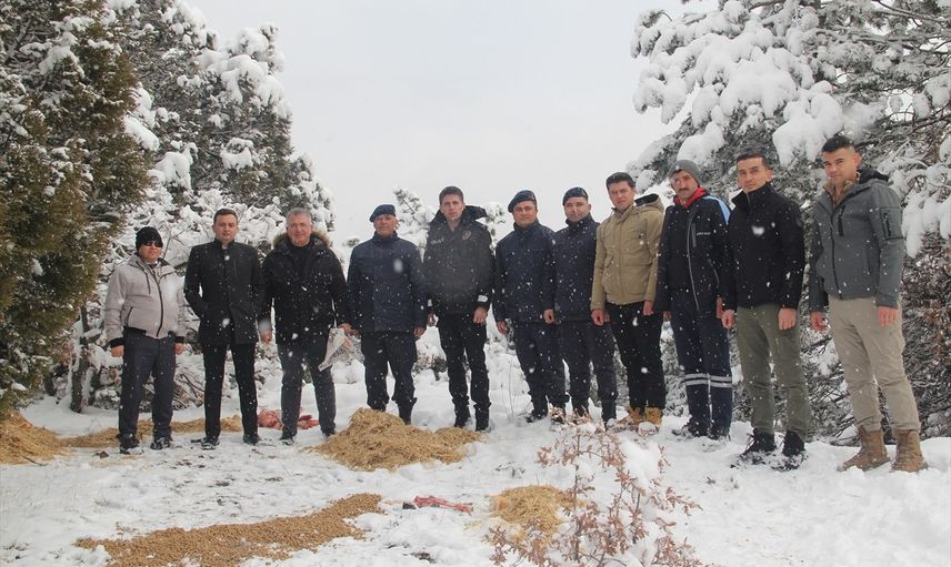 Çorum'un Oğuzlar Kaymakamı Tayfun Yılmaz, Belediye Başkanı Mustafa Cebeci, İlçe Jandarma Komutanı Astsubay Kıdemli Başçavuş Murat Okur, İlçe Emniyet Amiri Osman Esat Çelik ve belediye personeli yaban hayatı için doğaya yem bıraktı.