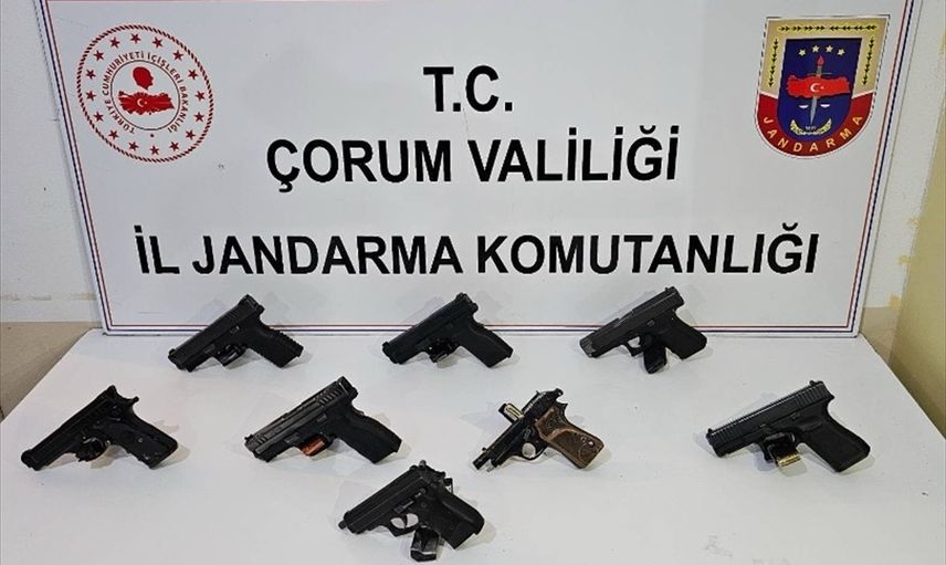 Çorum'un Mecitözü ilçesinde yasa dışı silah ticareti yaptığı belirlenen kişi tutuklandı. Evde yapılan aramada 7 tabanca, 1 kurusıkı tabanca ile çok sayıda mermi ele geçirildi.