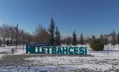 Çorum'da lapa lapa yağan kar sonrası Millet Bahçesi beyaz örtüyle kaplandı. Kent merkezinde yer alan park, ağaçları, yürüyüş yolları ve sosyal tesisleriyle kar altında farklı bir görünüm sergiledi.