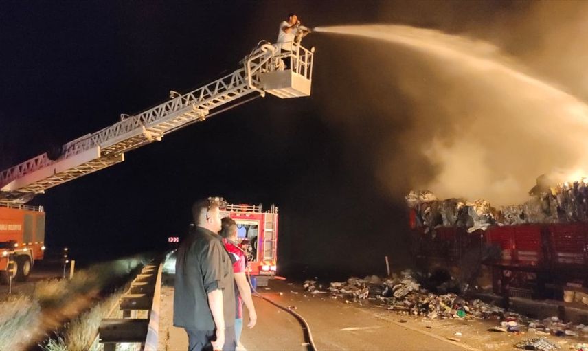 Yangını ve dumanları fark eden sürücü tırı yol kenarına park ederek yardım istedi. Yangının ilk olarak lastiklerde başladığı ve ardından atık plastiklere sıçrayarak dorsenin büyük bir bölümüne yayıldığı bildirildi.