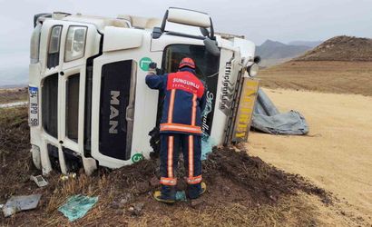 Çorum’un Sungurlu ilçesinde, Tuğcu köyü yolunda meydana gelen kazada virajı alamayan bir tır devrildi ve sürücüsü yaralandı.
