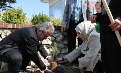 Kaymakam Şeyma Şendur ve Belediye Başkanı Mustafa Koloğlu öğrencilerle birlikte ağaç dikti