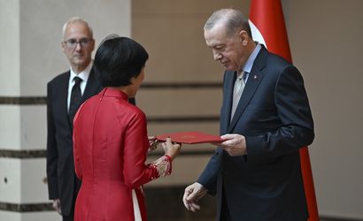 Kabulde, Belarus Büyükelçisi Anatoly Glaz, Brezilya Büyükelçisi Gilda Motta Santos Neves, Ekvador Büyükelçisi Pedro Vintimilla, Gürcistan Büyükelçisi Archil Kalandia ve Vietnam Büyükelçisi Dang Thi Thu Ha Cumhurbaşkanı Erdoğan'a güven mektuplarını sundu.