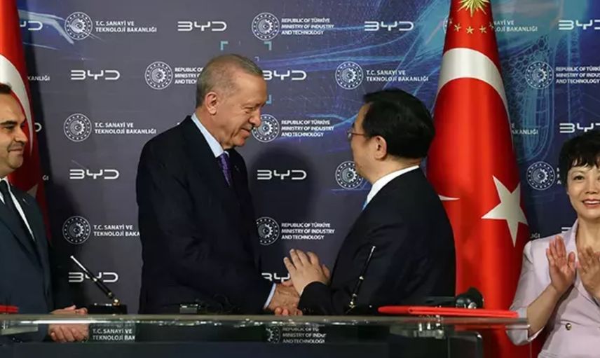 Cumhurbaşkanı Recep Tayyip Erdoğan, az önce Dolmabahçe Çalışma Ofisi’nde basına kapalı bir şekilde Çinli BYD firması ile Sanayi ve Teknoloji Bakanlığını kabul etti. Kabul sırasında basına kapalı bir görüşme yapılırken, görüşmenin ardından imza atmak üzere tören düzenlendi. Düzenlenen törende de Çinli BYD ile Sanayi ve Teknoloji Bakanlığı arasında imzalar atıldı. Atılan imzalar ise BYD'nin Türkiye’ye yatırım yapılmasına yönelik olarak gerçekleşti.