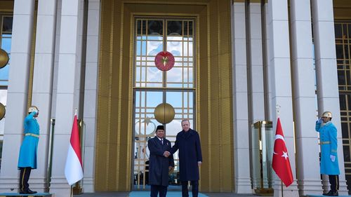 Cumhurbaşkanı Recep Tayyip Erdoğan, Endonezya Cumhurbaşkanı Subianto'yu resmi bir törenle ağırladı.
