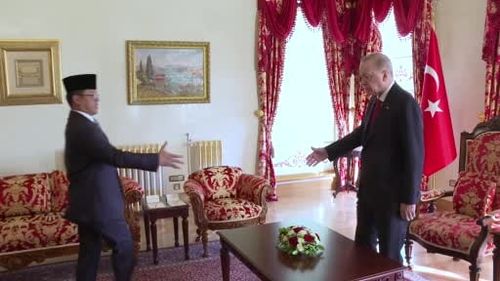 Cumhurbaşkanı Recep Tayyip Erdoğan, Endonezya Dışişleri Bakanı Sugiono ve Savunma Bakanı Sjafrie Sjamsoeddin'i kabul etti.