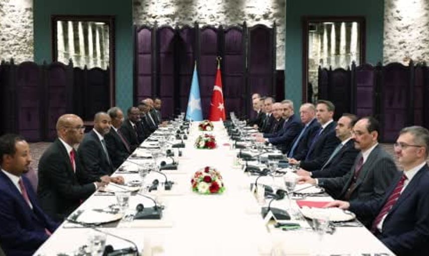 Cumhurbaşkanı Erdoğan ile Somali Cumhurbaşkanı Mahmud arasında gerçekleştirilen heyetler arası görüşmede, iki ülke ilişkilerinin güçlendirilmesine yönelik kapsamlı bir temas yapıldı. Görüşme, resmi heyetlerin katılımıyla yürütülen müzakere formatında sürdü.