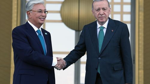 Cumhurbaşkanı Erdoğan, Kazakistan Cumhurbaşkanı Tokayev'i Türkiye'de resmi bir törenle karşıladı. İki lider önemli görüşmelere katılacak.