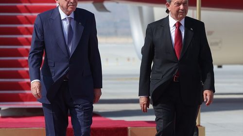 Cumhurbaşkanı Erdoğan, KKTC'ye varışında F-16'lar tarafından karşılandı. Ziyaret, Kıbrıs Barış Harekatı'nın 51. yılı nedeniyle yapıldı.