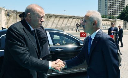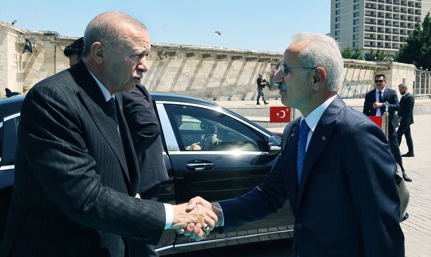 Cumhurbaşkanı Recep Tayyip Erdoğan, İstanbul Lütfi Kırdar Uluslararası Kongre ve Sergi Sarayı'nda düzenlenen "Küresel Ulaştırma Koridorları Forumu"nun açılışına katıldı. Erdoğan'ı, programda Ulaştırma ve Altyapı Bakanı Abdulkadir Uraloğlu (sağda) karşıladı.