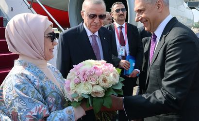 Cumhurbaşkanı Erdoğan ile eşi Emine Erdoğan, Cumhurbaşkanlığı İletişim Başkanı Fahrettin Altun ile Cumhurbaşkanı Dış Politika ve Güvenlik Başdanışmanı Akif Çağatay Kılıç da kente geldi.