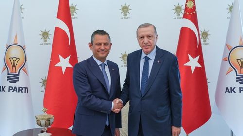 Cumhurbaşkanı ve AK Parti Genel Başkanı Recep Tayyip Erdoğan ile Cumhuriyet Hak Partisi Genel Başkanı Özgür Özel görüşmesinden ilk kareler geldi.