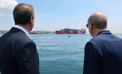 Cumhurbaşkanı Recep Tayyip Erdoğan, Türkiye'nin ilk yüzer doğal gaz üretim platformu (FPU) Osman Gazi'yi Karadeniz Sakarya Gaz Sahası'na uğurladı.