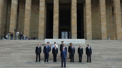 Cumhurbaşkanı Recep Tayyip Erdoğan, Yüksek Askeri Şura (YAŞ) üyeleriyle beraber Anıtkabir'i ziyaret etti. Anıtkabir'e yapılan bu ziyaret, Cumhurbaşkanlığı Külliyesi'ndeki toplantı öncesinde gerçekleştirildi. Erdoğan'ın Aslanlı Yol'un başlangıcında yerini almasının ardından yapılan törene, Cumhurbaşkanı Yardımcısı Cevdet Yılmaz, Adalet Bakanı Yılmaz Tunç, Dışişleri…