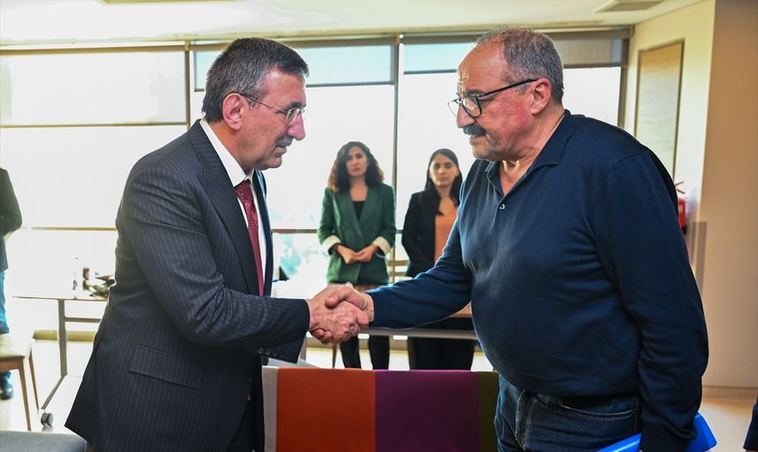 Cumhurbaşkanı Yardımcısı Cevdet Yılmaz (sol 3), TBMM Başkanvekili ve DEM Parti İstanbul Milletvekili Sırrı Süreyya Önder'in vefatından dolayı yakınlarına hastanede taziyelerini iletti.