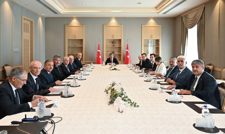 Cumhurbaşkanı Yardımcısı Cevdet Yılmaz (solda), Türkiye Ziraat Odaları Birliği (TZOB) Genel Başkanı Şemsi Bayraktar (sağda) ve beraberindeki heyeti kabul etti.