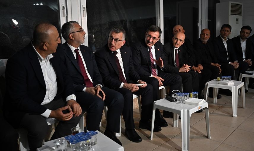Giresun'daki DOKAP Eylem Planı Bilgilendirme ve İstişare Toplantısı'nın ardından Cumhurbaşkanı Yardımcısı Yılmaz ile Hazine ve Maliye Bakanı Mehmet Şimşek, Çalışma ve Sosyal Güvenlik Bakanı Vedat Işıkhan ve AK Parti Grup Başkanı Abdullah Güler, Antalya'nın Alanya ilçesine geldi.