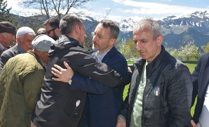 Cumhurbaşkanlığı İletişim Başkanı Fahrettin Altun'un (sağ 2) amcası Nurettin Altun'un cenazesi, Artvin'in Şavşat ilçesine bağlı Oba köyünde düzenlenen cenaze töreninin ardından toprağa verildi.