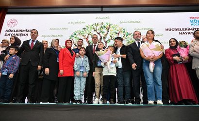 Sağlık Bakanı Kemal Memişoğlu (ortada), TÜRKÖK'ün 10. yılı dolayısıyla Sağlık Bakanlığı Bilkent Yerleşkesi'nde düzenlenen hasta-donör buluşması etkinliğine katıldı.