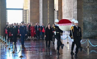 Heyet, Aslanlı Yol'dan yürüyerek Büyük Önder Gazi Mustafa Kemal Atatürk'ün mozolesine geldi. Bayer'in çelenk bırakmasının ardından heyet saygı duruşunda bulundu ve hatıra fotoğrafı çekildi.
