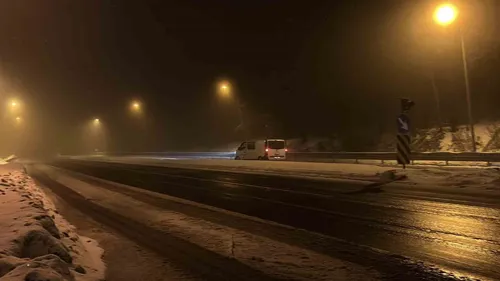 D-100 karayolu Bolu Dağı kesiminde dün etkisini yitiren yağış, bugün akşam yeniden başladı; karayolları küreme ve tuzlama, trafik ekipleri sürücüleri uyarıyor.