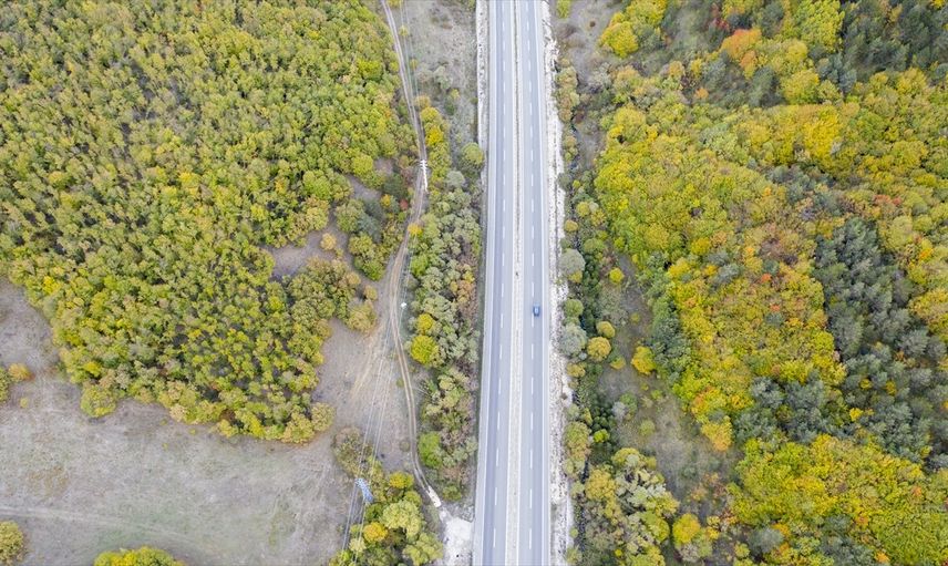 Bölgede etkili olan sonbahar renkleri, karayolunu çevreleyen orman dokusunun geniş perspektiften de dikkat çekici olduğunu gösteriyor; söz konusu renk değişimi havadan görüntülere de yansıyor ve güzergâhın görsel niteliğini vurguluyor.