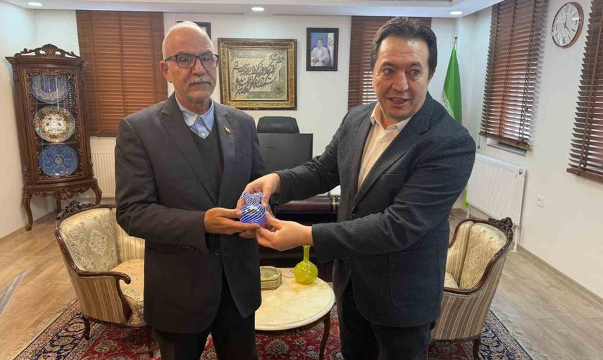 Başkonsolos Alibeman Eghbalı Zarch, yönetim kurulu üyelerine Farsça ve Türkçe yazılı kutlama mesajı takdim etti; DAGC Başkanı Ayhan Türkez ise Başkonsolos’a cam işlemesi bir vazo hediye etti.