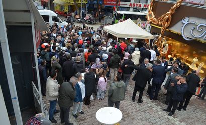 Kocaeli'nin Darıca ilçesinde, bir kuyumcu zincirinin yeni şube açılışında ilk 500 müşteriye 0,25 gram altın, sonraki 500 kişiye saat hediye edilmesi yoğunluğa yol açtı.