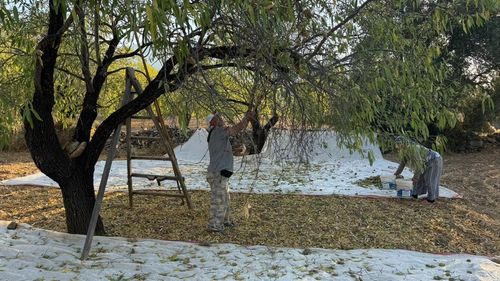 Muğla'nın Datça ilçesinde badem hasadı sıcak havalar nedeniyle daha erken dönemde başladı.