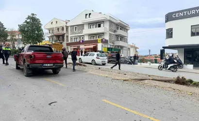 Datça'da kontrolden çıkan otomobil refüjde 2 ağacı ve elektrik direğini devirdi